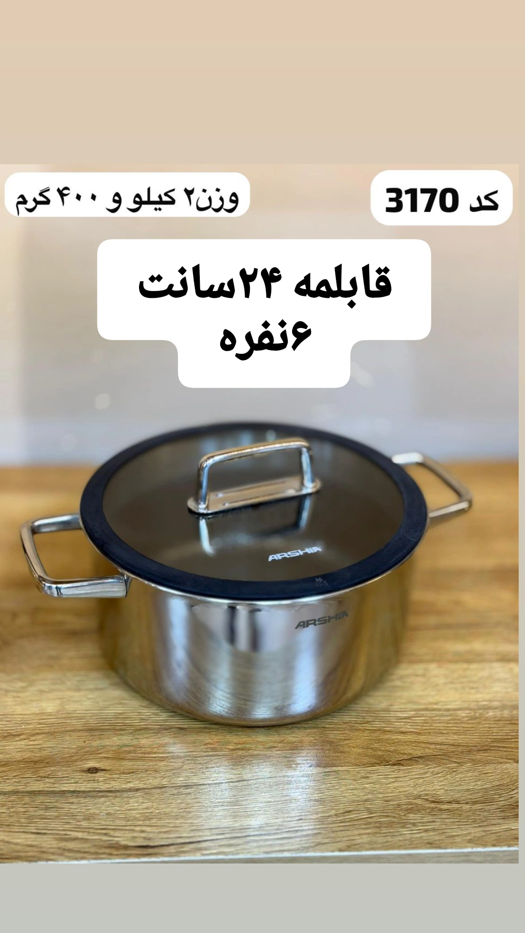 قابلمه استیل عرشیا مدل۳۱۷۰سایز ۲۴ کف لیزری(ارسال رایگان)۷٬۹۰۰٬۰۰۰ 3%