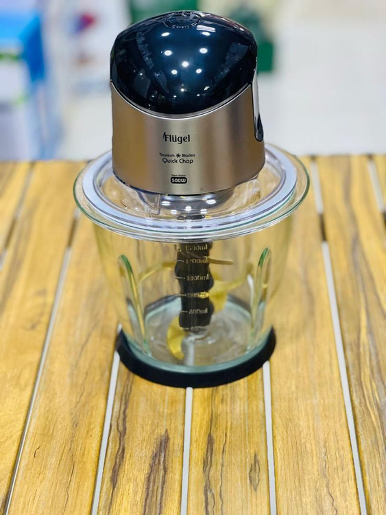 خردکن فلوگل توان مصرفی500W ظرفیت 1/ جنس ظرف خرد کن شیشه ای جنس تیغه:تیتانیوم تیغه ۶ پره نحوه عملکرد دکمه فشاری محصول المان ۱۴ماه ضمانت