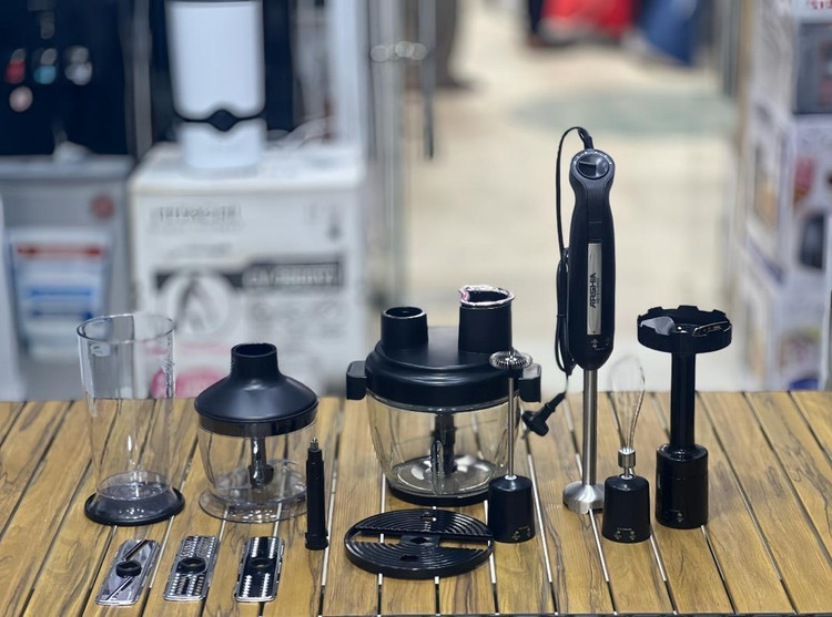 گوشت کوب 8کاره عرشیا مدل:3265 توان مصرفی: 1000وات شامل؛همزن؛فوم ساز شیر؛خردکن نیم لیتری ۱عدد ؛غذاساز؛گوشت کوب؛پوره کنه سیب زمینی؛ خردکن دو لیتر ۱عدد؛شامل سه عدد رنده (ورقه کردن،له کردن، رنده کردن) برند آلمان دارای ۱۸ماه گارانتی